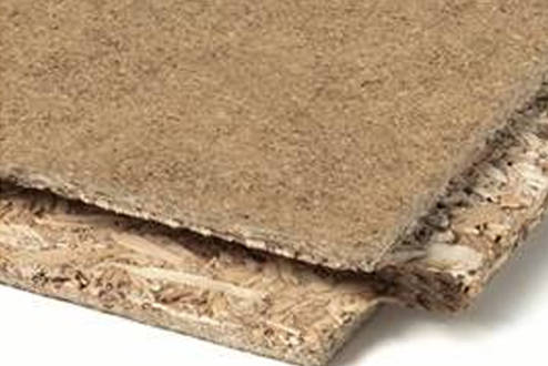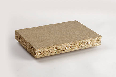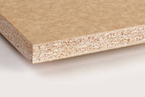 Tauler de partícules de fusta en tres capes, amb una superfície plana, suau i uniforme.